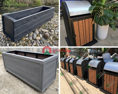 Chậu hoa, thùng rác,… làm bằng gỗ nhựa – Giải pháp đồng bộ thẩm mỹ ngoài trời