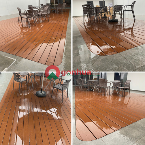 - Gỗ nhựa có thành phần hạt nhựa + bột gỗ, chịu nhiệt tốt, hạn chế cong vênh và duy trì form ổn định.