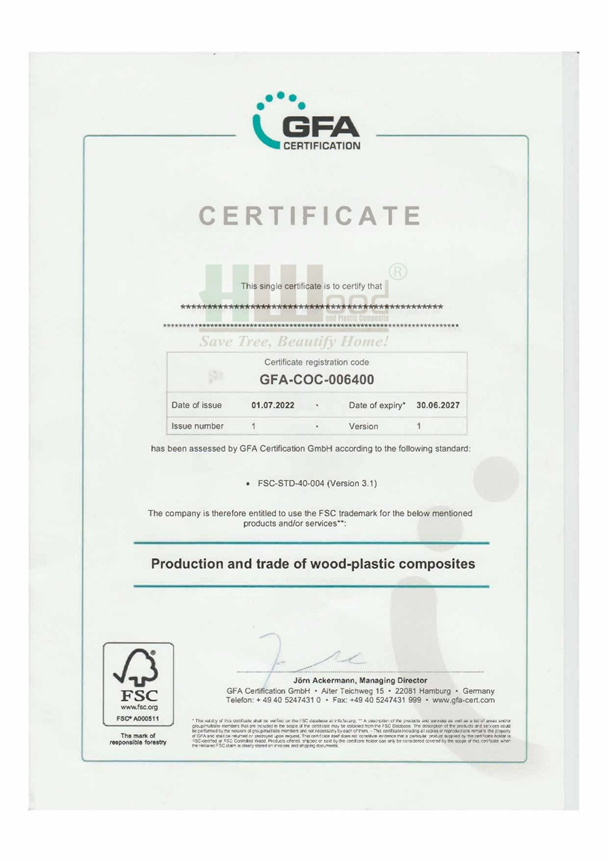 Hwood Việt Nam sở hữu chứng chỉ FSC® A000511 do FSC cấp chứng minh cho các sản phẩm Hwood đều đáp ứng chuẩn quốc tế FSC-STD-40-004.