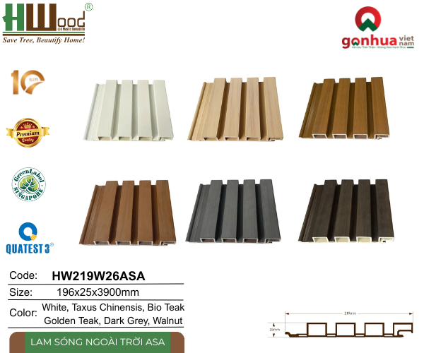 GỖ NHỰA PHỦ ASA NGOÀI TRỜI HWOOD CHẤT LƯỢNG CAO- ĐA DẠNG MẪU MÃ - ĐỦ LOẠI MÀU SẮC - ĐA DẠNG KẾT CẤU.