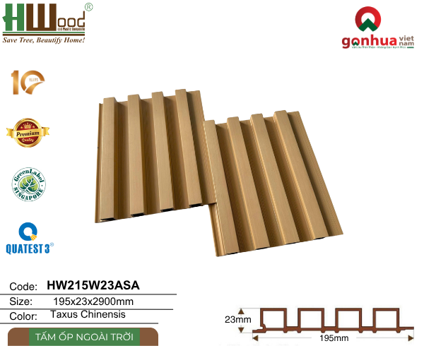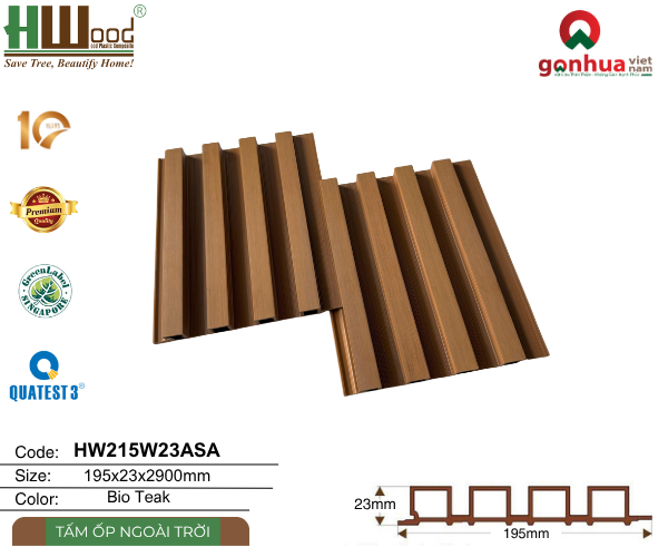 HW215W23ASA nhà Hwood không chỉ là vật liệu ốp tường – đó là giải pháp hoàn hảo kết hợp giữa thẩm mỹ – bền vững – kinh tế, phù hợp với xu hướng sống “green” và “outdoor living” hiện đại