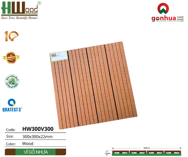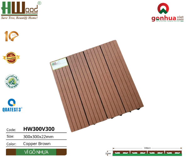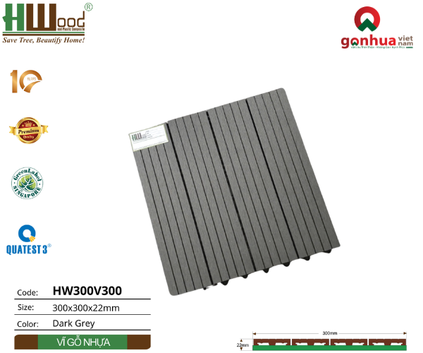 I.Tổng quan về tấm vỉ sàn ngoài trời Hwood HW300V300: