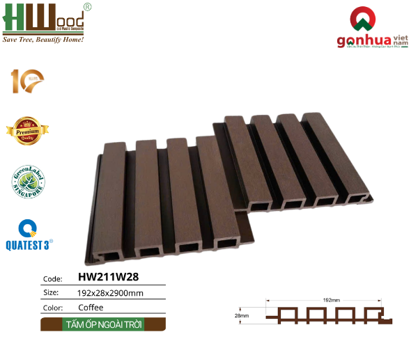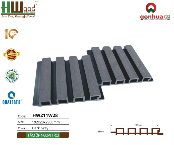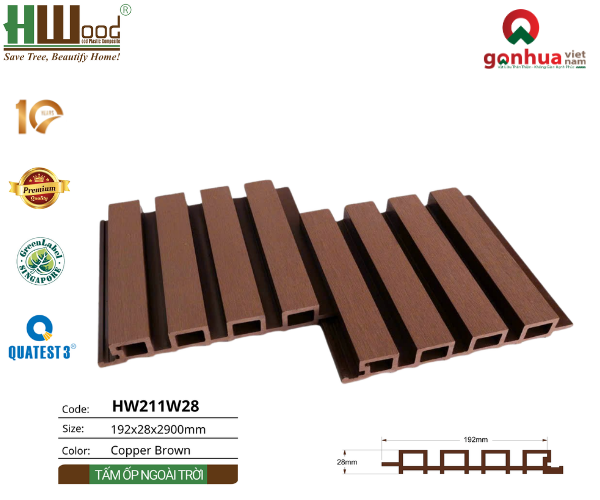 Lam sóng ngoài trời Hwood đang là một xu hướng thiết kế không gian sống đang ngày càng được ưa chuộng. Với sự kết hợp tinh tế giữa vẻ đẹp tự nhiên của gỗ và tính linh hoạt của nhựa, tấm ốp WPC HW211W28 mang lại cho bạn một giải pháp hoàn hảo cho mọi yêu cầu thiết kế với nhiều ưu điểm nổi bật nh