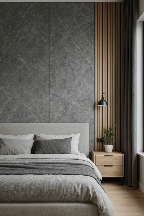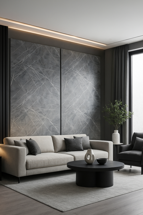 Nhờ gam màu nâu trầm quý phái, kết hợp cùng vân sáng tự nhiên, tấm ốp thường được sử dụng để ốp vách phòng khách, vách tivi, khu vực nhà bếp, tường toilet hoặc hành lang nội thất, mang lại không gian ấm áp và sang trọng.