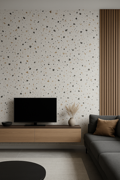 Nhờ màu sắc phong phú và họa tiết terrazzo độc đáo, tấm PVC giả đá Terrazzo Hwood được các kiến trúc sư và gia chủ ưa chuộng trong nhiều không gian nội thất và ngoại thất: