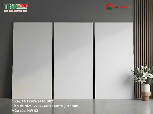Tấm ốp PVC TENO được chế tạo từ các thành phần: bột đá tự nhiên siêu mịn, nhựa nguyên sinh, chất tạo màu, chất chống cháy và phụ gia chống mối mọt, bằng công nghệ ép đùn hiện đại, bề mặt phủ lớp film cao cấp chống trầy xước, chống bám bụi và giữ màu lâu dài. Nhờ cấu trúc linh hoạt, sản phẩm có thể uốn cong nhẹ để thi công các khu vực cột tròn hoặc bo góc mà không bị rạn nứt. Với gam màu trắng tinh khiết, không vân, sản phẩm mang đến cảm giác thoáng đãng, sạch sẽ và hiện đại cho mọi công trình.