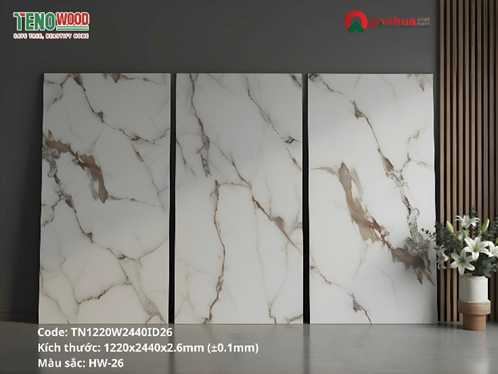 Tấm ốp TenoWood HW-26 là lựa chọn lý tưởng cho những ai yêu thích vẻ đẹp sang trọng của đá cẩm thạch Ý nhưng muốn giải pháp nhẹ, bền, thân thiện và tiết kiệm hơn.