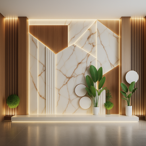 Gợi ý: Phối tấm ốp HW-26 cùng nội thất gỗ nâu nhạt, ánh sáng vàng ấm, hoặc kim loại màu đồng để tôn lên sự sang trọng.