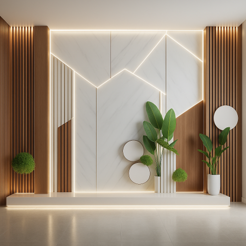 · Phòng khách: Ốp vách tivi hoặc hậu sofa, giúp không gian trở nên hiện đại, sang trọng.