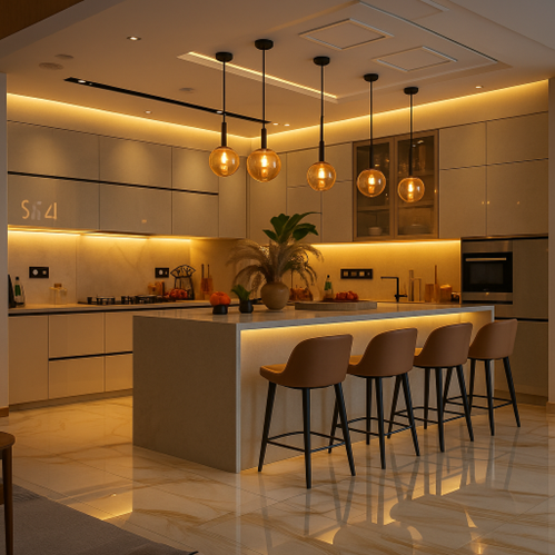 · Phòng khách: Tạo nền sáng nhẹ, giúp không gian rộng hơn và thanh thoát.