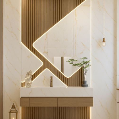 Thẩm mỹ cao cấp như đá tự nhiên: Vân đá tinh tế, màu sắc nhã nhặn giúp không gian mở rộng và sáng hơn.