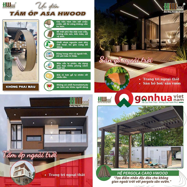 - Pergola gỗ nhựa, lam gỗ nhựa aphủ ASA, tấm ốp gỗ nhựa ASA, thanh đa năng gỗ nhựa, lam sóng gỗ nhựa cho giàn hoa, mái che, hàng rào.