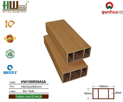 LAM GỖ NHỰA ASA - HW100R50ASA MÀU GOLDEN TEAKThanh lam ASA Hwood HW100R50ASA màu Golden Teak giải pháp bền đẹp cho mọi công trình ngoài trời