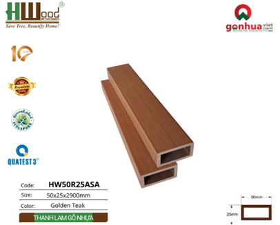 LAM GỖ NHỰA ASA - HW50R25ASA MÀU BIO TEAKThanh lam ASA Hwood HW50R25ASA màu Bio Teak giải pháp bền đẹp cho mọi công trình ngoài trời