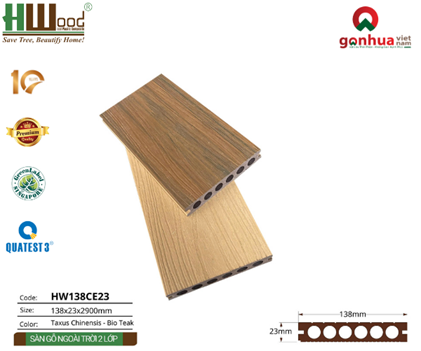 1.Cấu tạo sàn ngoài trời 2 da Hwood HW138CE23 màu Chinensis + Bio Teak: