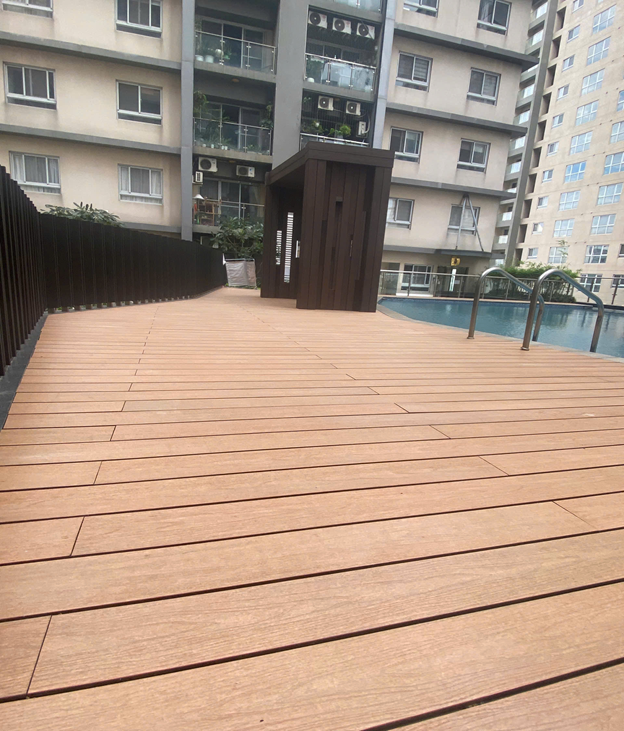 Cần cảnh bề mặt gỗ nhựa Hwood khu đi lại hồ bơi khu căn hộ Cosmo City- Quận 7
