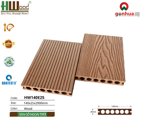 SÀN NHỰA HWOOD-HW140A25 MÀU COFFEESàn gỗ nhựa ngoài trời Hwood một mặt vân sọc lớn một mặt vân gỗ 2D. Mời mọi người tham khảo tin tức