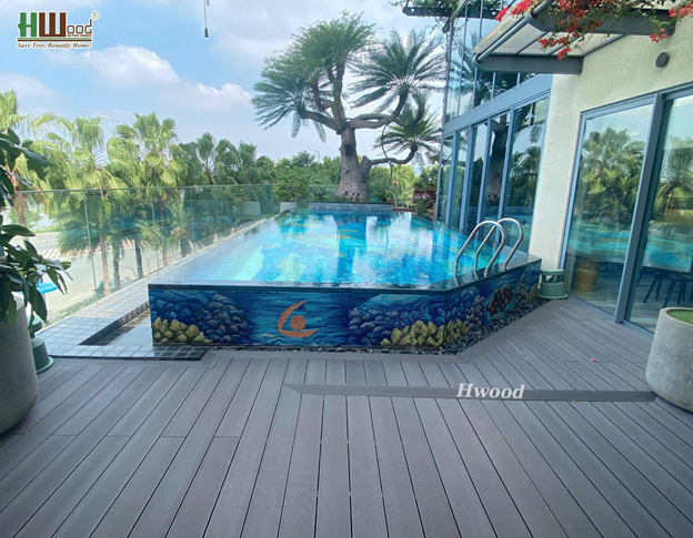 Một hồ bơi sử dụng sản phẩm gỗ nhựa Hwood