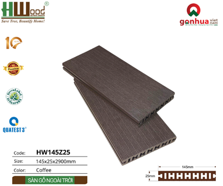1.Cấu tạo sàn gỗ nhựa ngoài trời HW145Z25 màu Coffee: