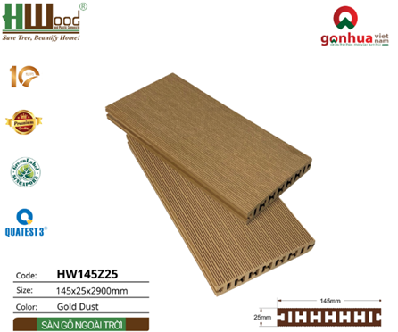 1.Cấu tạo sàn gỗ nhựa ngoài trời HW145Z25 màu Gold Dust: