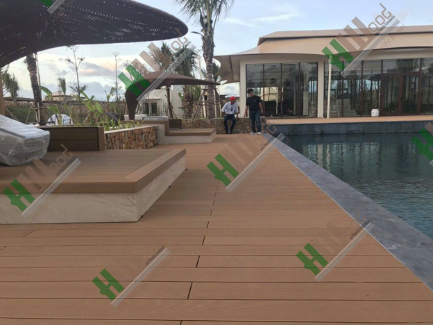 Khu sàn hồ bơi dự án Fusion Cam Ranh - sử dụng gỗ nhựa Hwood