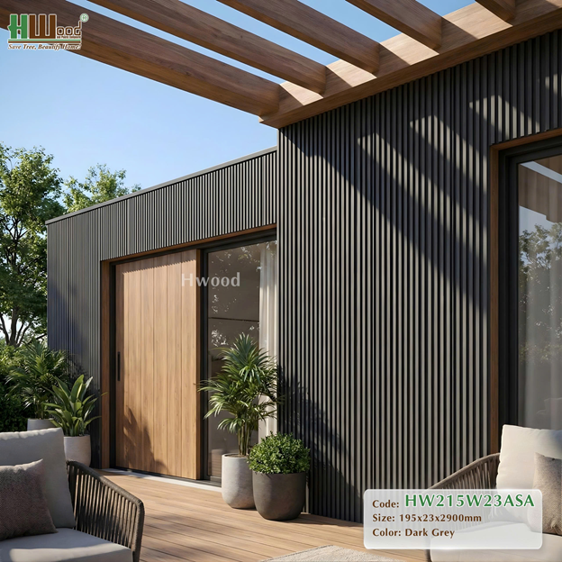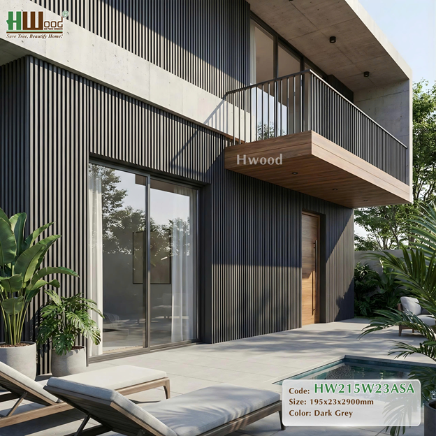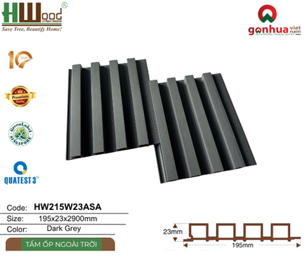1.Cấu tạo tấm ốp ngoài trời Hwood HW215W23ASA màu Dark Grey