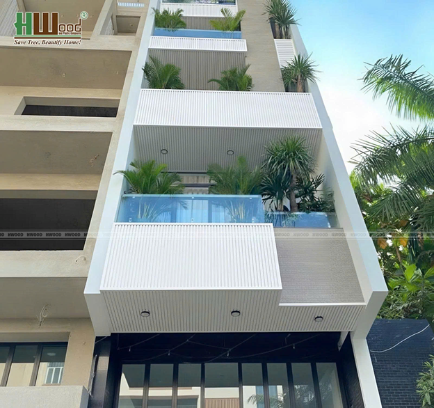 Hệ logia sử dụng tấm ốp gỗ nhựa phủ ASA thương hiệu Hwood - Hình ảnh : gỗ nhựa Hwood
