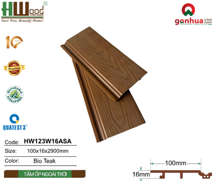 Tấm ốp ASA Hwood HW123W16ASA màu Bio Teak không chỉ là vật liệu xây dựng, mà còn là giải pháp hoàn thiện không gian sống hiện đại – đẹp, bền và thân thiện với môi trường. Nếu bạn đang tìm kiếm một dòng sản phẩm ốp tường ngoài trời vừa sang trọng vừa có tuổi thọ cao, đây chính là lựa chọn lý tưởng.