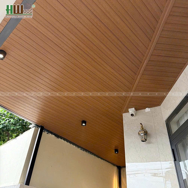 Trần nhà sử dựng tấm ốp ASA thương hiệu gỗ nhựa Hwood