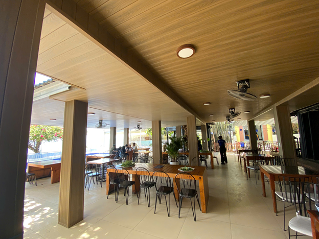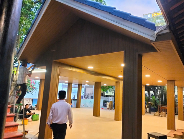 - Hệ trần khu cafe sử dụng gỗ nhựa ASA của kho gỗ nhựa Hwood -Hình ảnh: Hoàng Yến Hotel Quy Nhơn