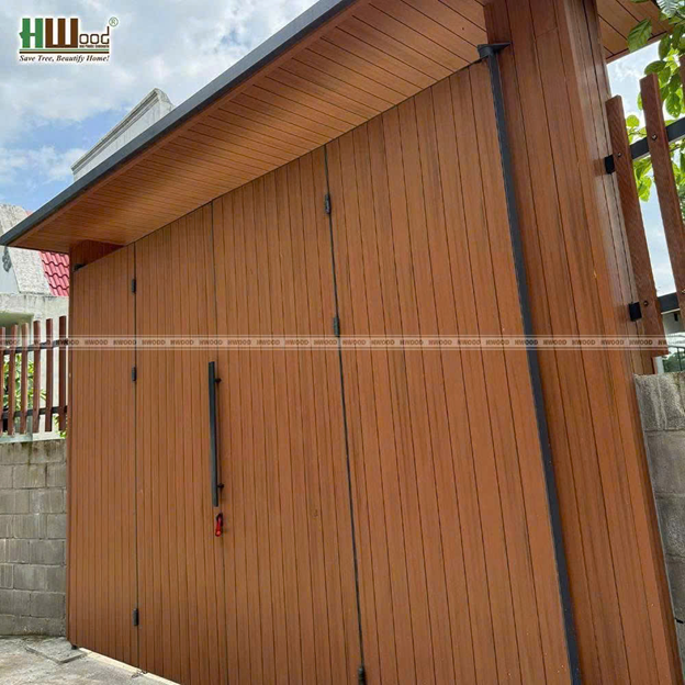 Hệ cửa cổng sử dụng tấm ốp gỗ nhựa ASA thương hiệu Hwood- Hình ảnh : gỗ nhựa Hwood