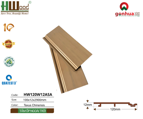 TẤM ỐP ASATấm ốp ASA Hwood - HW120W12ASA màu Golden Silk Teak mặt vân gỗ 2D, chiến binh cho mọi công trình gỗ