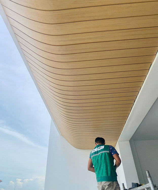 + Ốp trần trên sân thượng, ban công : mang đến vẻ đẹp sang trọng , thoáng đãng cho không gian ngoại thất nhằm bảo vệ tường, trần nhưng cũng che đi khuyết điểm và tạo điểm nhấn cho không gian ngoại thất mang lại sự sang trọng hiện đại.