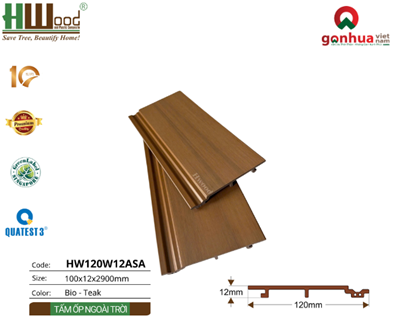 1.Cấu tạo tấm ốp phủ ASA Hwood HW120W12ASA màu Bio-Teak: