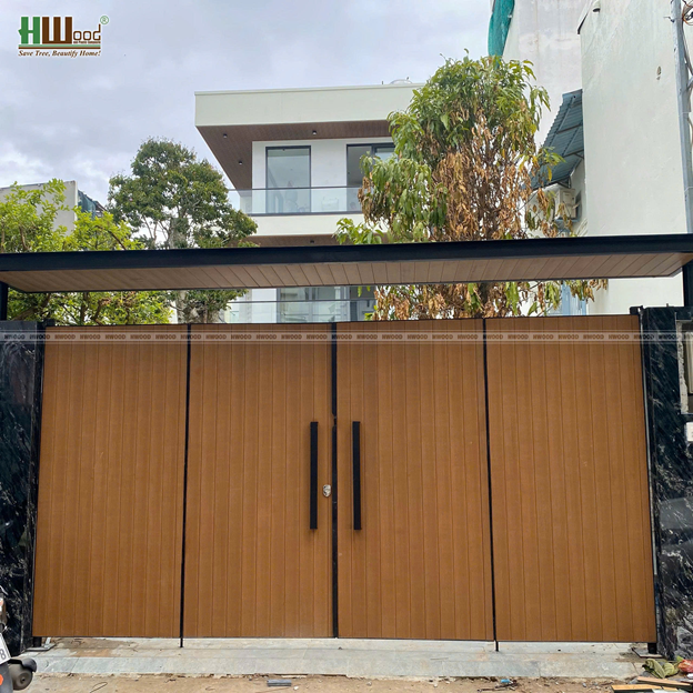 Hệ cửa 4 cánh sử dụng tấm ốp gỗ nhựa phủ ASA thương hiệu Hwood - Hình ảnh : gỗ nhựa Hwood