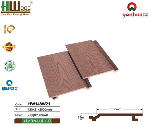 Tên gọi khác: Ốp ngàm ngoài trời, tấm ốp vách, tấm ốp gỗ nhựa, tấm ốp ngoài trời, tấm ốp 148x21, tấm ốp ngoài trời Hwood.
