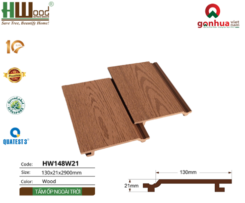 Tên gọi khác: Ốp ngàm ngoài trời, tấm ốp vách, tấm ốp gỗ nhựa, tấm ốp ngoài trời, tấm ốp 148x21.