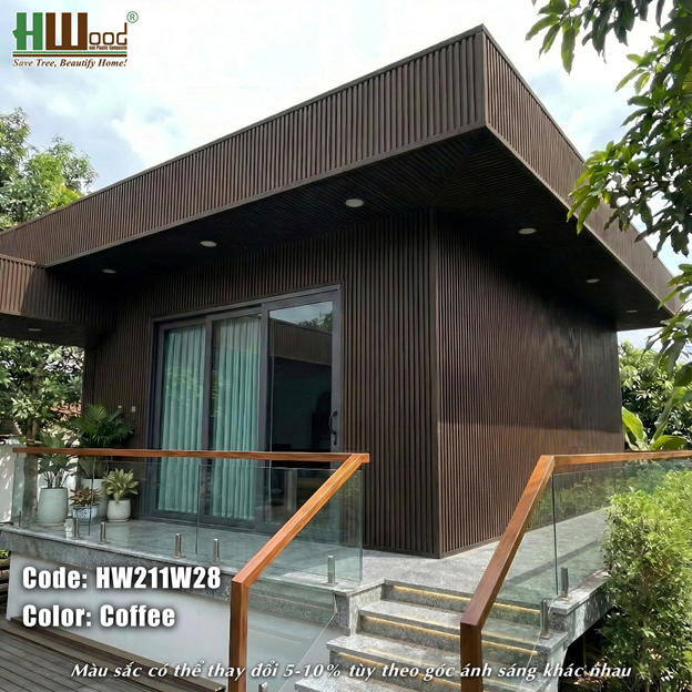 3. Ứng dụng tấm ốp lam sóng ngoài trời HW211W28 màu Coffee:
