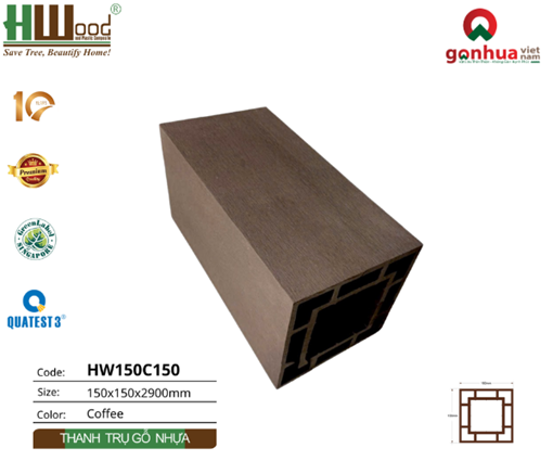 1.CẤU TẠO TRỤ GỖ NHỰA NGOÀI TRỜI HWOOD HW150C150 MÀU COFFEE: